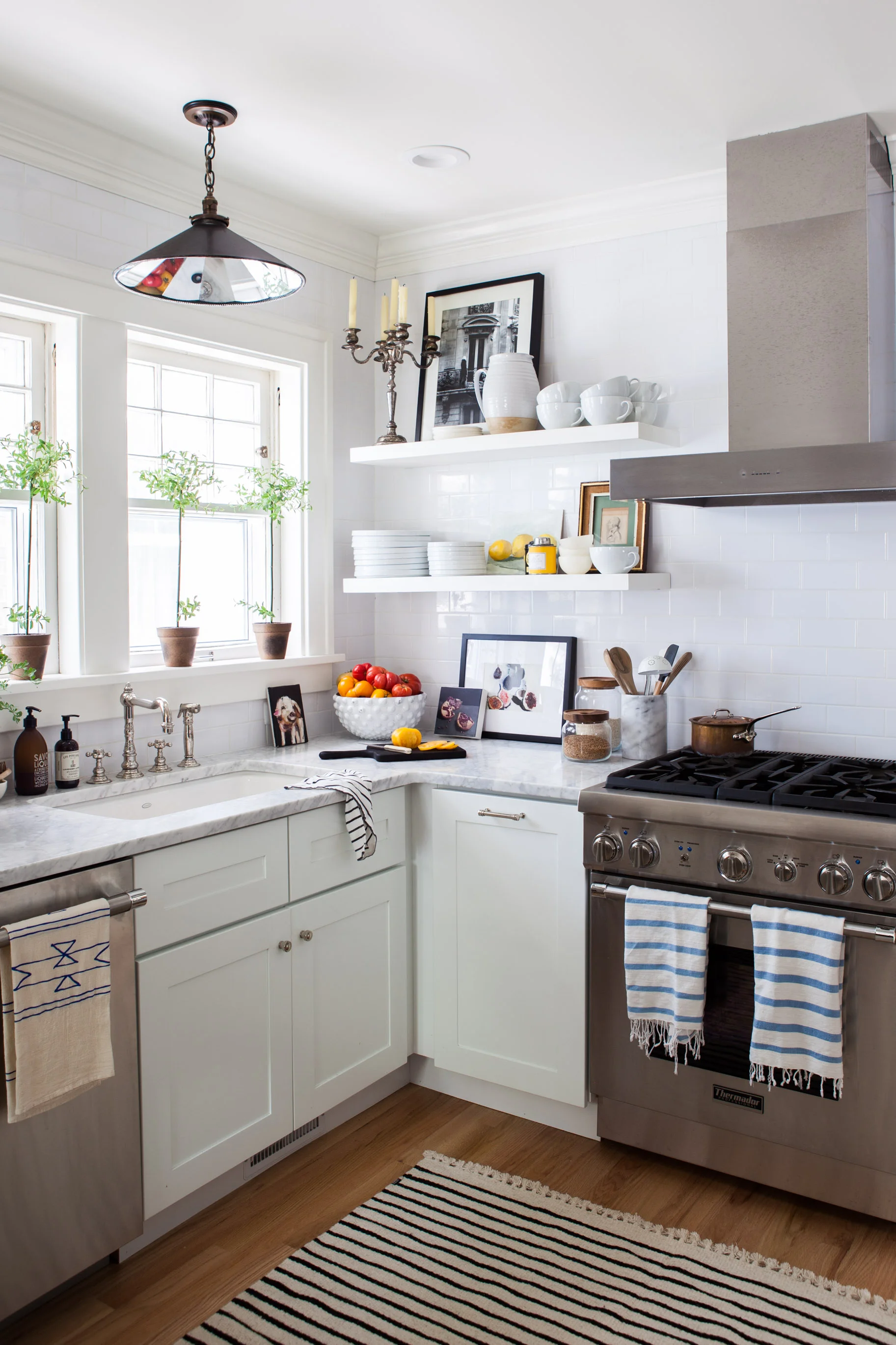 After nearly a decade of apartment dwelling in New York, Michelle was thrilled to design her first "real" kitchen and learn how to cook. Figs by Giulia Bianchi and Untitled by Pavel Feinstein add a splash of color to the whitewashed space. Photo by Marta Xochilt Perez