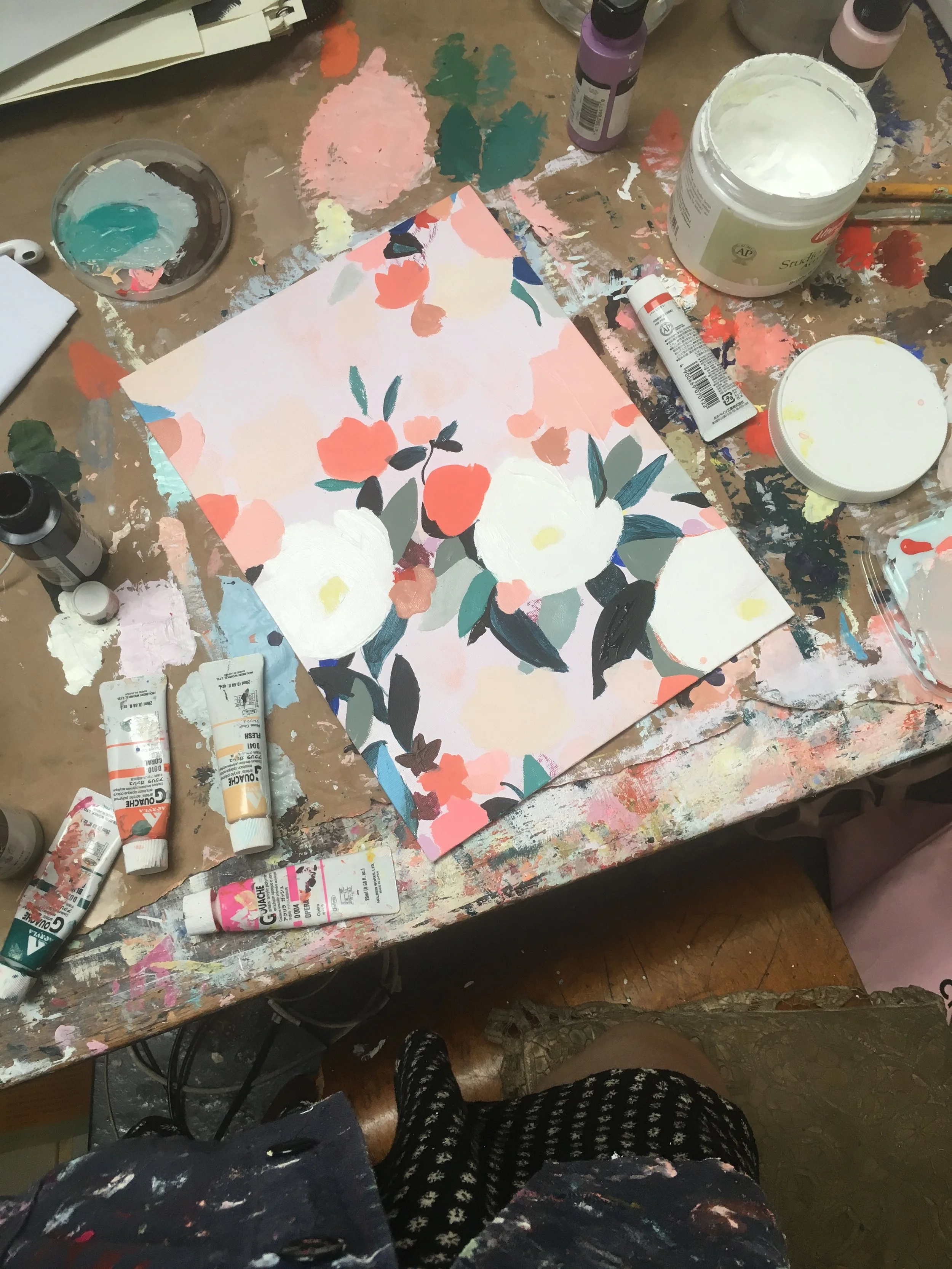 KATY SMAIL: I grew up in the countryside, playing in the rivers and woodlands, overgrown fields and purple hills. Now that I live in a big city, I feel especially nostalgic for all of that time spent in nature. I think that the floral paintings are my way to reconnect to that wild feeling. I love to go back home and be amongst the scruffy trees and overgrown wildflowers; it rains so much that there is growth and life everywhere. It is so lovely and scruffy and moody.